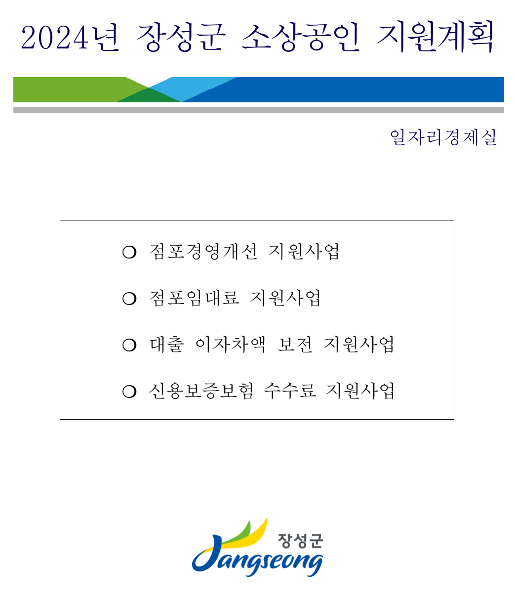 상반기 소상공인 지원사업 신청을 희망하는 장성지역 소상공인은 2월 29일까지 신청서 등 필요 서류를 갖춰 군 일자리경제실로 제출하면 됩니다.