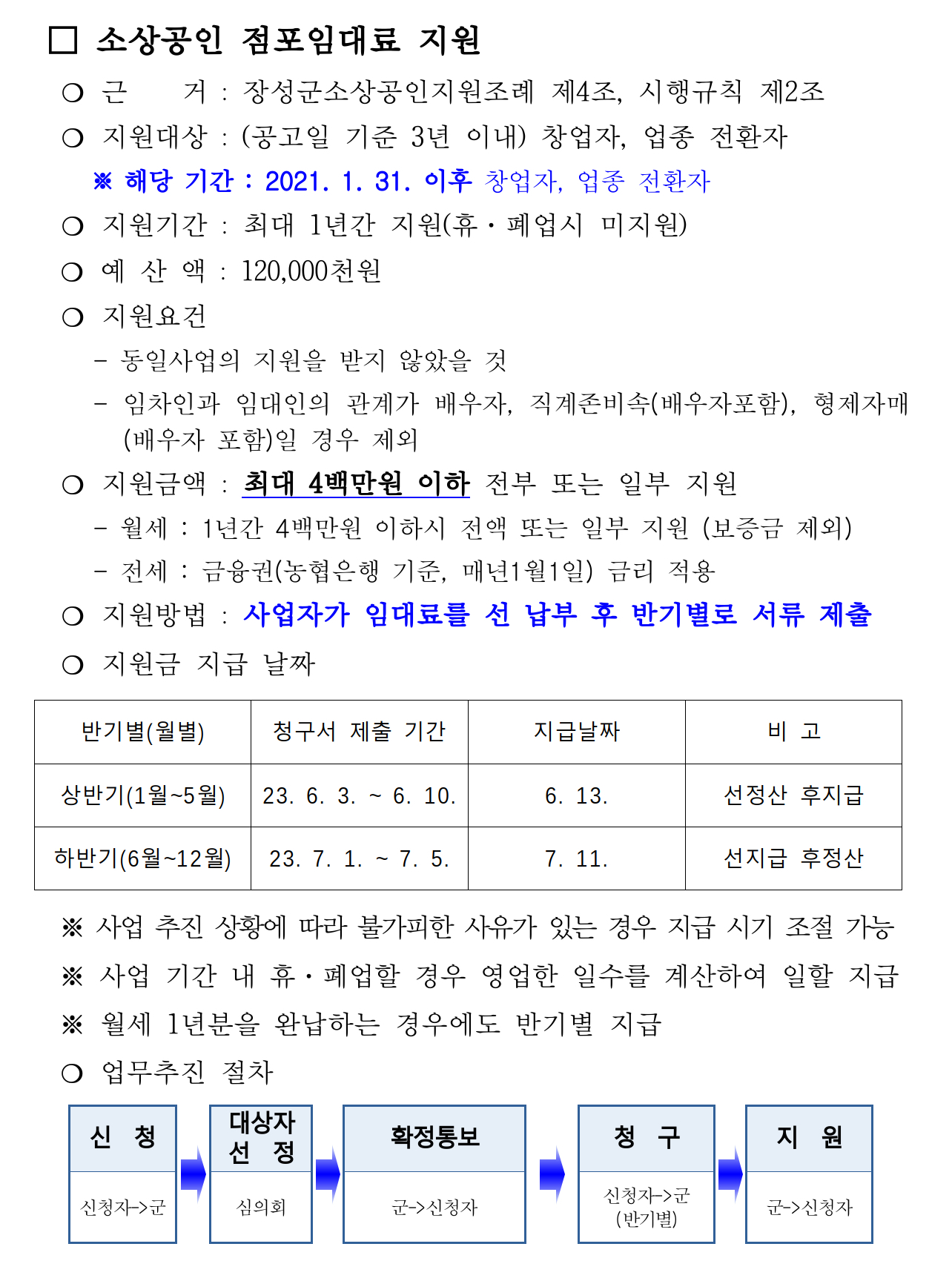 자세한 사항은 장성군 누리집 공지사항(https://www.jangseong.go.kr/home/www/news/jangseong/notice/show/5416?page=1&search=&keyword=)에 게시되어 있으니 참고하시길 바랍니다.