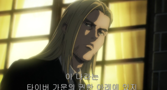 전사장 대장 테오와 타이버가문의 당주가 서로 만나면서, 서로를 견제하는 모습을 보여줍니다. 대장 테오는 타이버가문 내에 전퇴의 거인이 있는지를 언급하지만,누구인지는 말을 해주지 않았습니다. 또한, 빌리는 지금의 마레를 걷게된 것에 대해서 같이 언급을 하면서 모든 것들을 세계를 위해서 모든 사실을 털어놓을 작정이라고 대화합니다. 그리고 둘의 대화는 끝이 납니다. 그리고