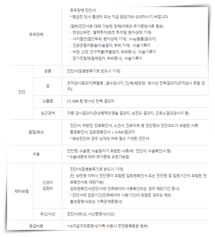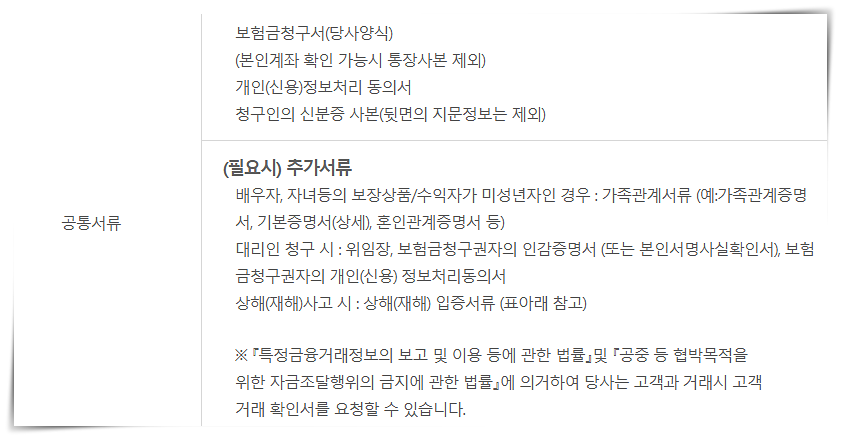 기본적인 서류는 보험금청구서,