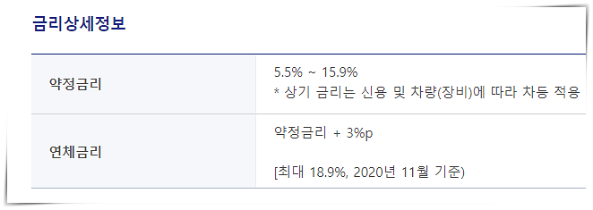 연체금리는 타 업체와 동일하게