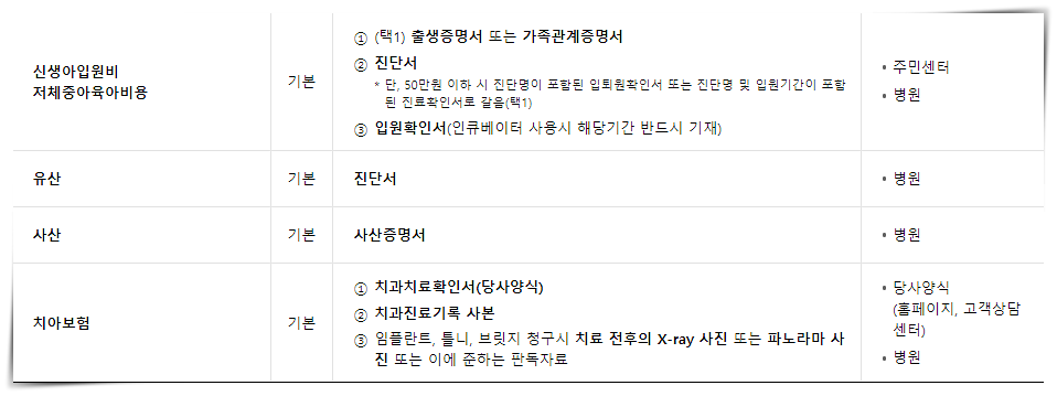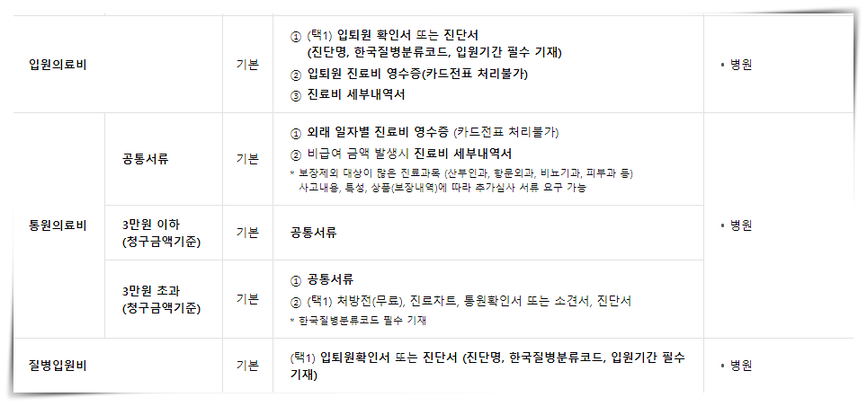 필요하며 진료비 영수증, 진료비 세부내역서가