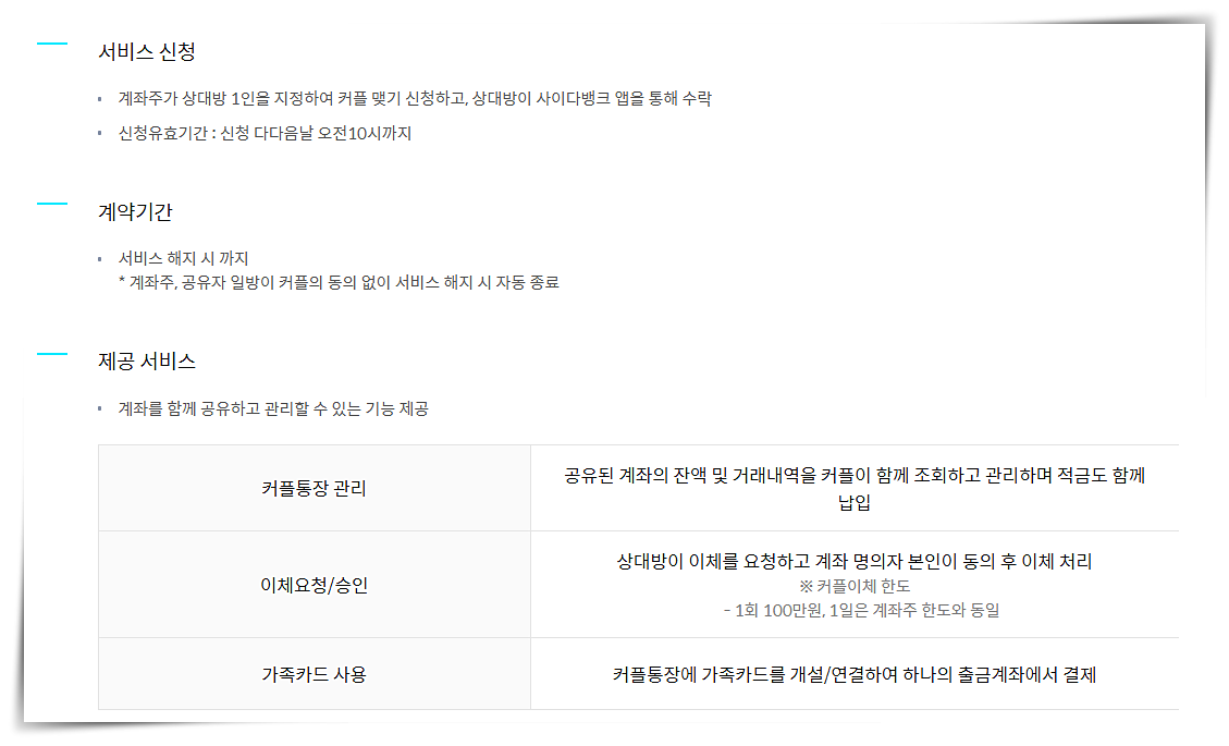 사이다뱅크 커플통장 유의사항