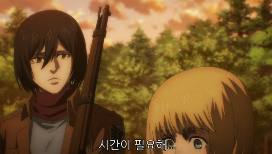 스파이 역할을 했던 마렌측 병사로인해서 나머지 병사들도 같이 체포할 수 있게 되었고, 그들의 병사들을 길들이는데 성공합니다. 내부적으로도 반발을 심한 병사들도 존재했습니다. 그 중에서도 요리사 1명이 있었는데, 샤샤가 음식을 잘 먹어주는 것에 항상 흐뭇했었습니다. 다만, 샤샤가 죽음으로써 샤샤의 비석 앞에서 울음을 보이는 모습도 나오곤 했습니다. 다. 이러한 내용들을 아르민이 독백을 하게 되었고, 그 앞에는 애니의 수정체가 존재하고 있었습니다. 추가적인 내용은 넷플릭스를 통해서 보시기를 바랍니다.