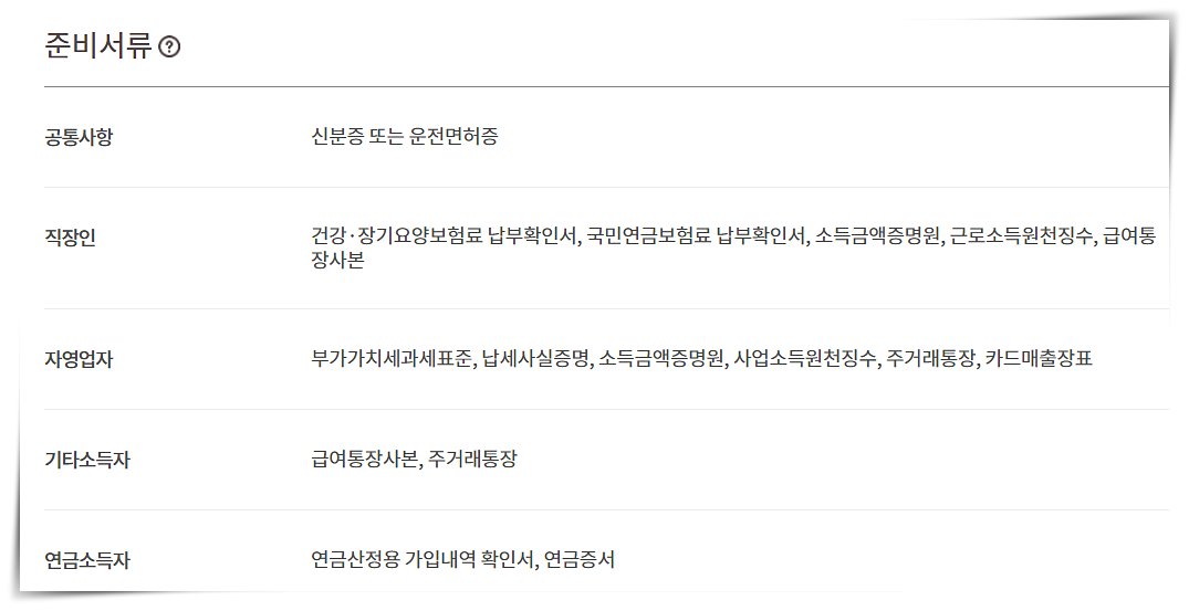 공통적인 서류는 신분증 또는