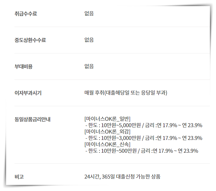 OK저축은행 마이너스 통장 수수료
