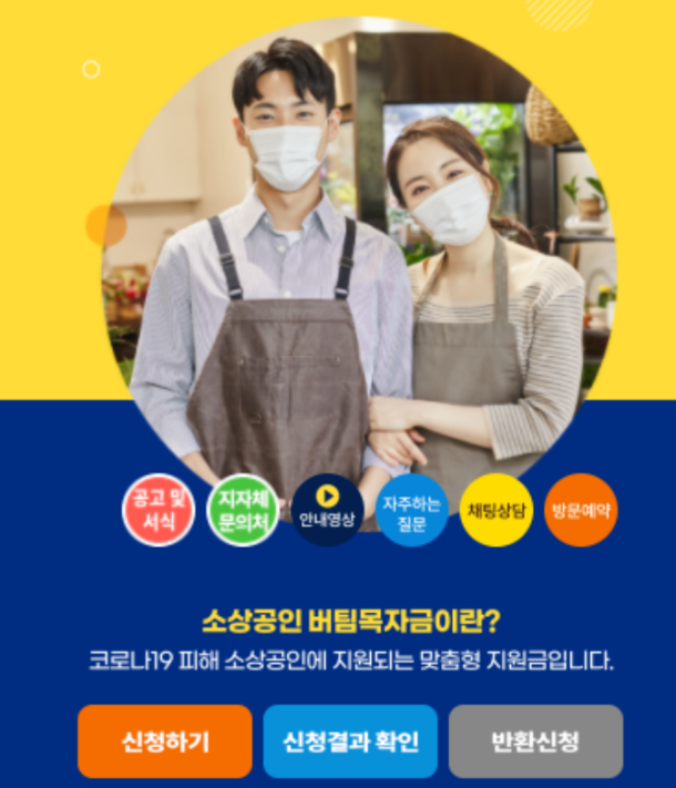 소상공인 버팀목 자금 신청하기 위해서는 아래의 링크 또는 배너를 통해서 바로 확인할 수 있습니다.