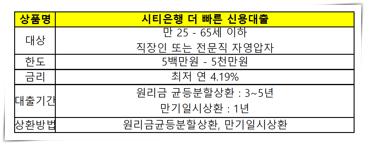 시티은행 더 빠른 신용대출