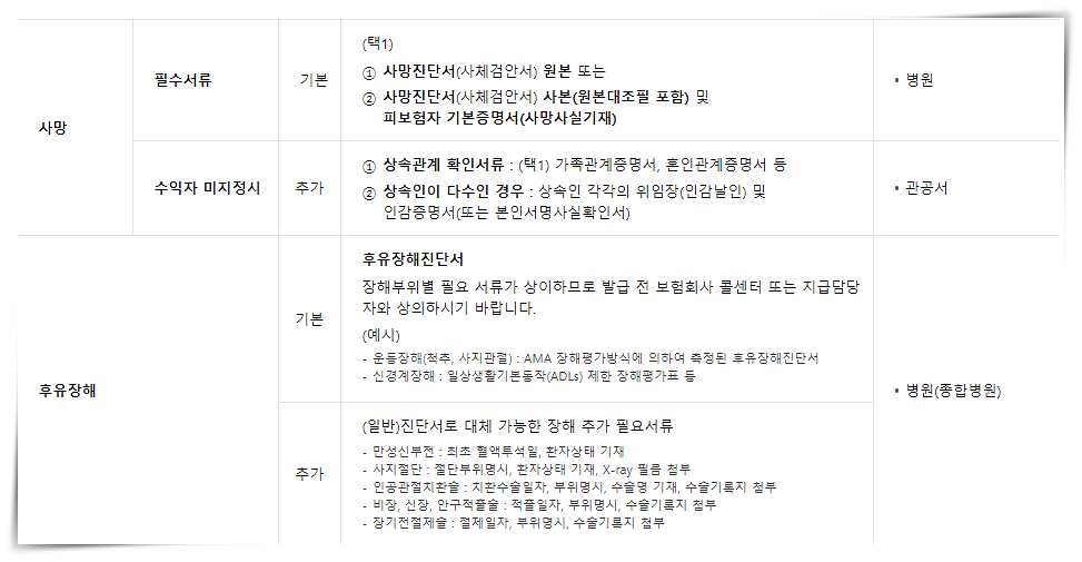 한화손해보험 보험금 청구 : 사망, 장애