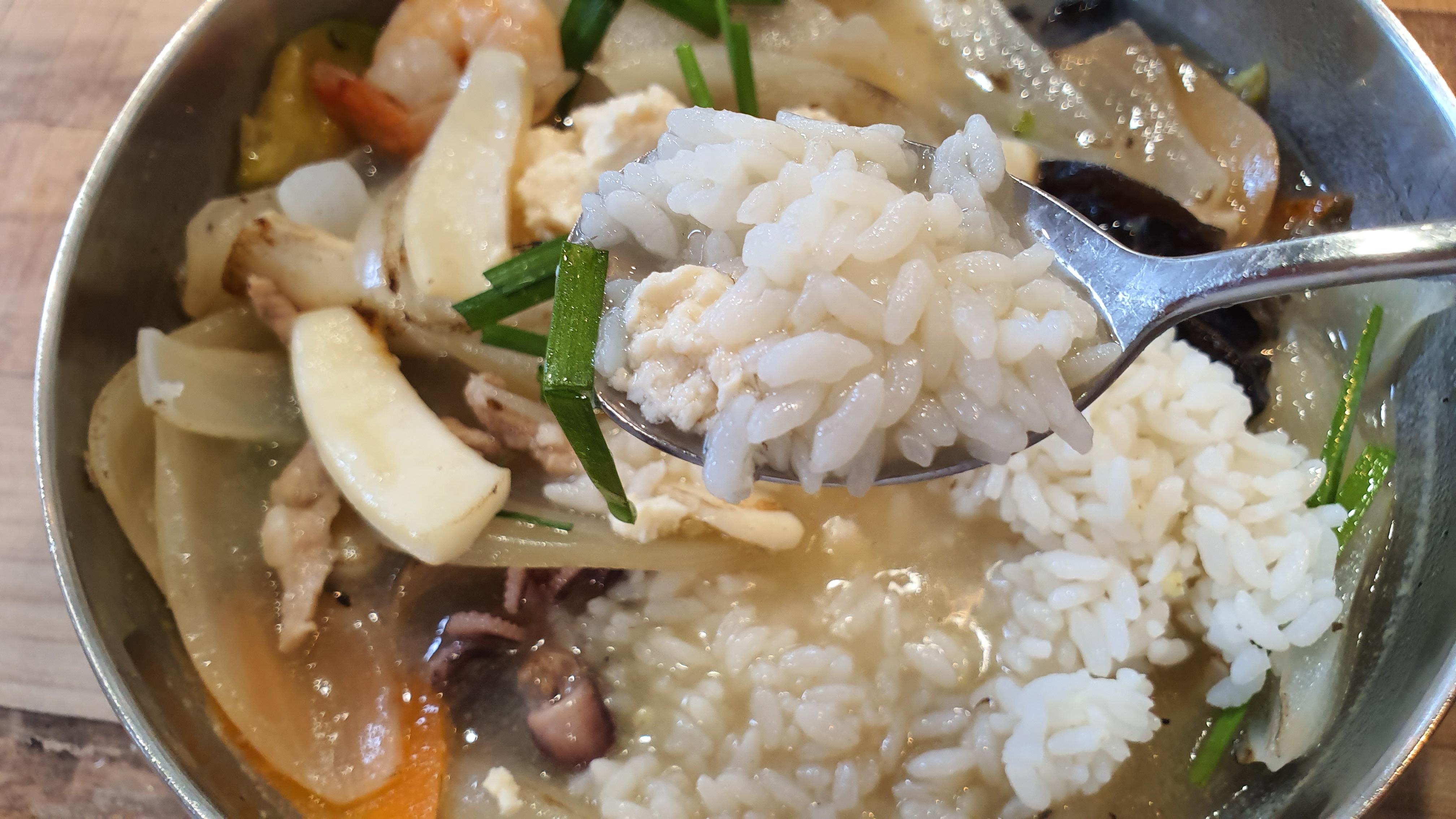 백짬봉순두부에도 해산물과 밥이 같이 들어있어서 각 사람당 1개만 시켜도 배가 불렀습니다.