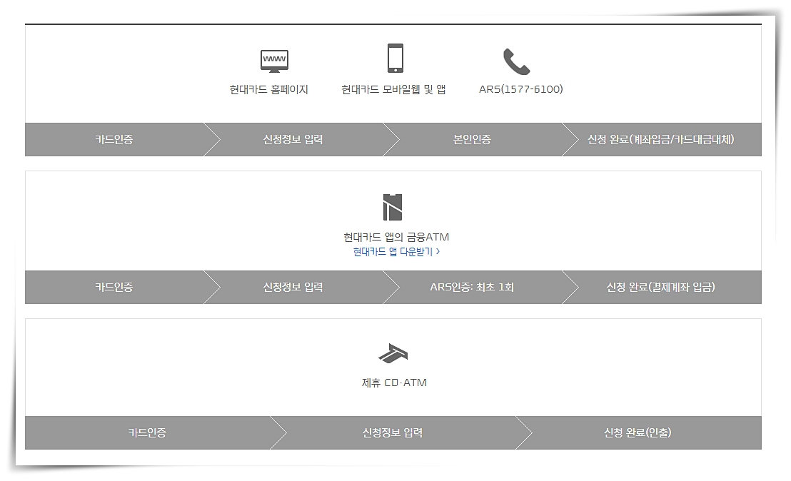 (현대카드 홈페이지, 모바일, ARS)