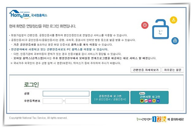 국세청 연말정산 간소화 서비스 홈페이지 바로가기 >>