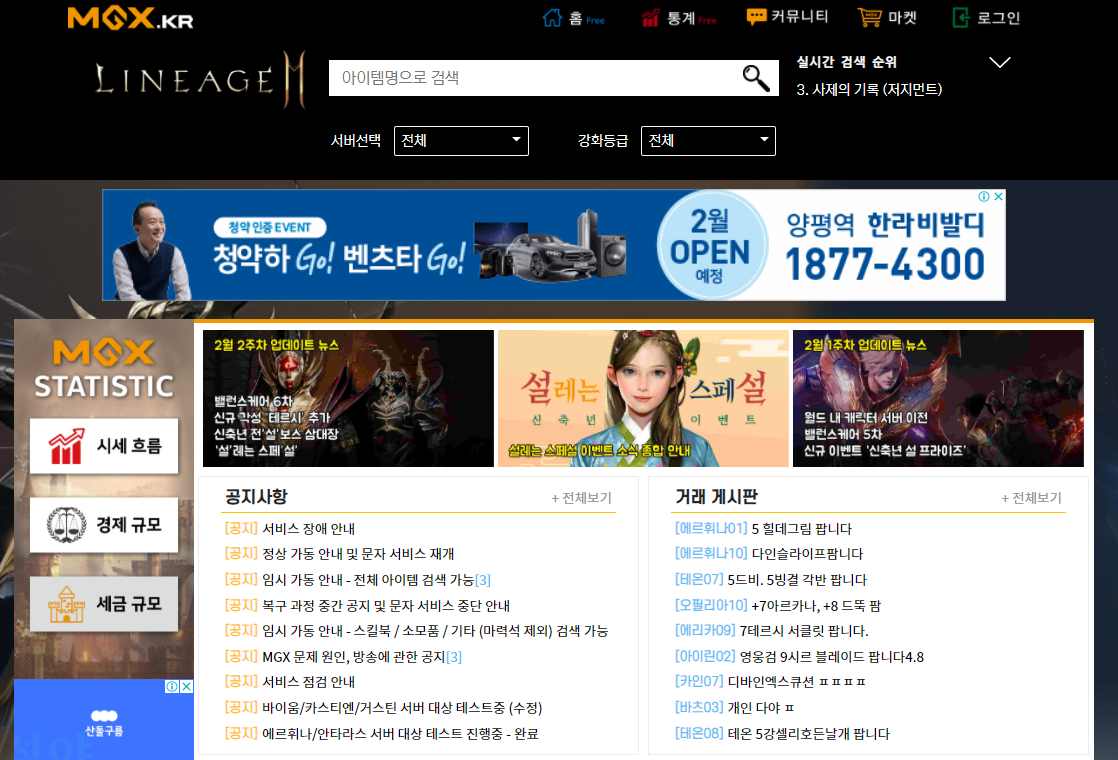 MGX 홈페이지는 우리가 알고 있는 택진이 형이 만들었다라는 말이 있을정도로 리니지를 하시는 분들이라면 인기가 좋은 사이트입니다. 특히, NC 소프트 내에서는 모바일 게임인 리니지M,리니지2M은 모바일 게임 매출로 3천억을 달성한 적이 있는 효자 게임입니다.