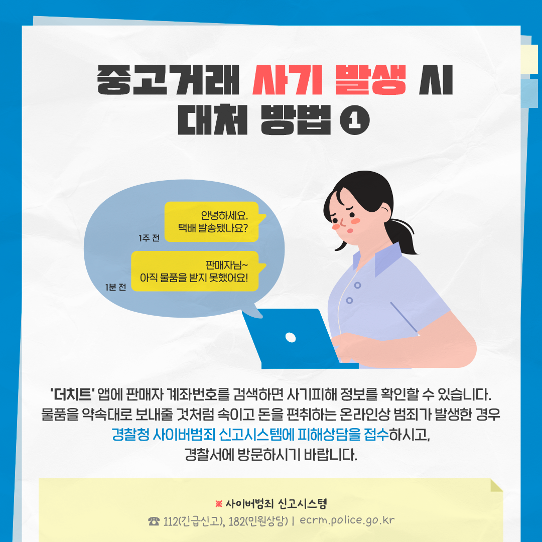 최근 중고거래에 대한 관심이 높아지면서 중고거래 사기 또한 빈번하게 일어나고 있다고 하는데 중고거래 피해가 발생하면 어떻게 대처할 수 있을지 신고는 어떻게 하는지 알려드리겠습니다.