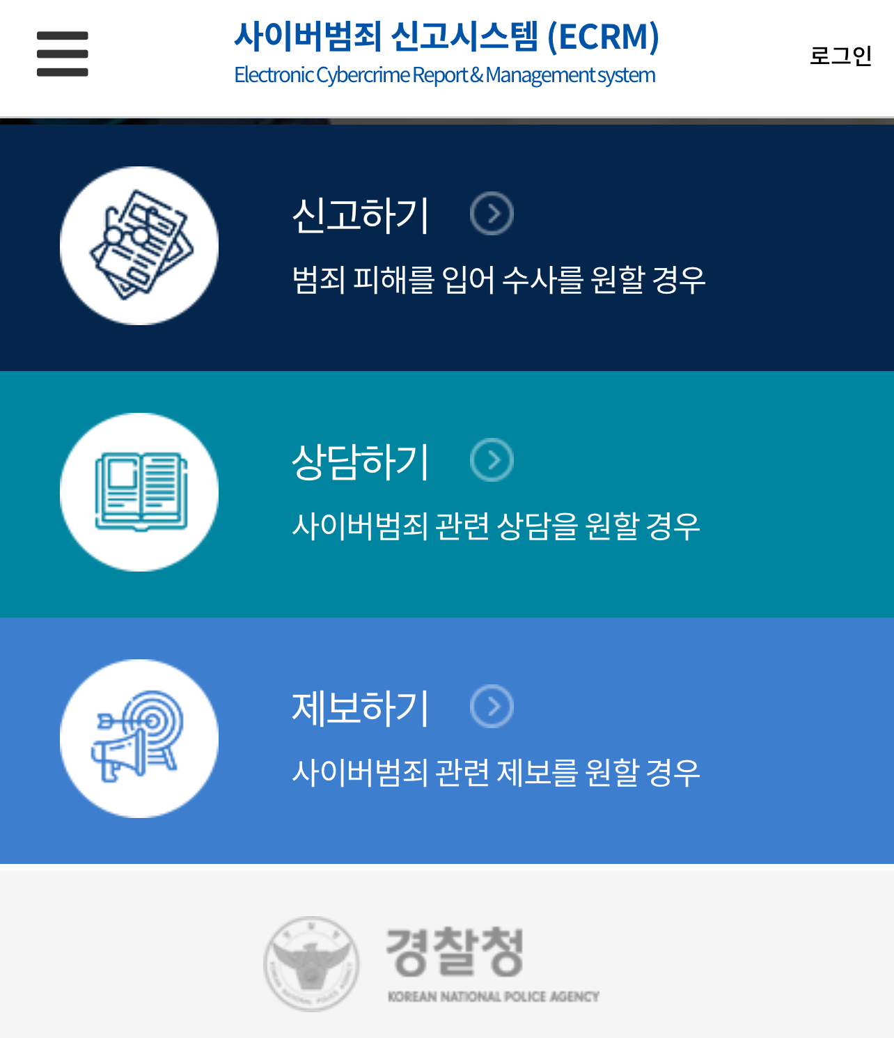 112(긴급신고), 182(민원상담) 혹은 홈페이지(https://ecrm.police.go.kr/) 이용