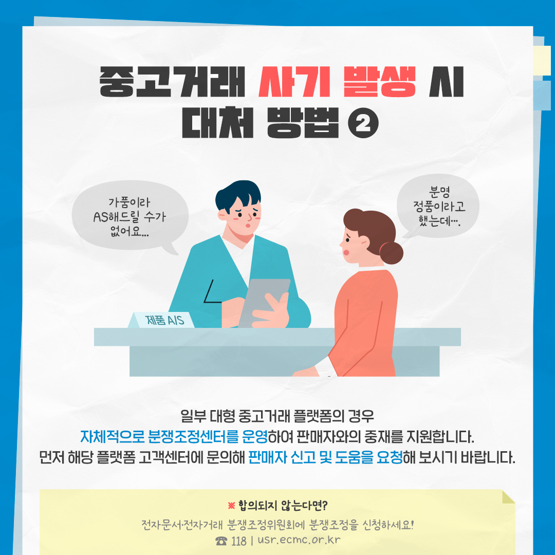 ② 일부 대형 중고거래 플랫폼의 경우 자체적으로 분쟁조정센터를 운영하여 판매자와의 중재를 지원합니다.