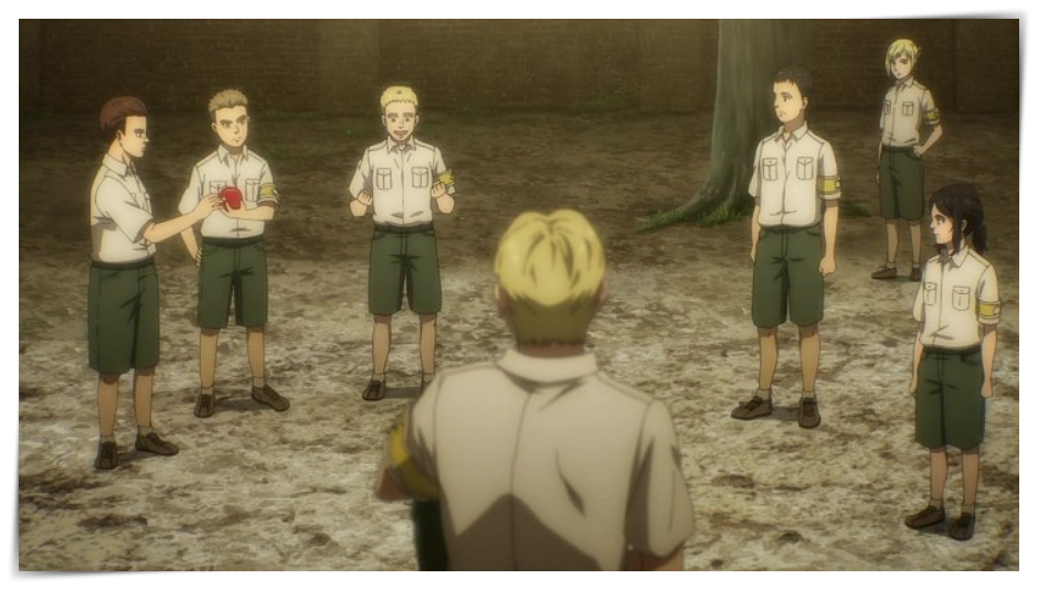 3화에서는 갑옷거인인 라이너를 중심으로 이야기가 되어있습니다. 어린시절 라이너는 명예로운 마레인이 되기 위해서 전사를 위해서 노력하는 모습이 나왔습니다. 다만 거인이 되기 위한 후보는 8명이었지만, 거인이 될 수 있는 사람은 7명이었습니다.