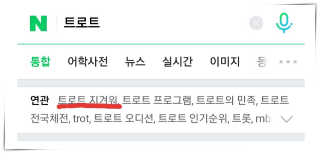 트로트 지겨워가 연관 검색어에 나온 것입니다.