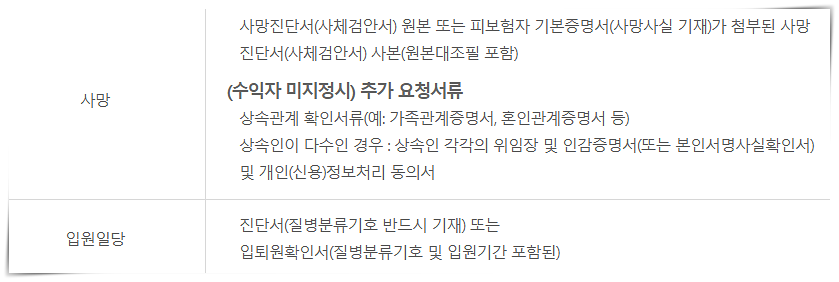 기본적인 서류는 보험금청구서,