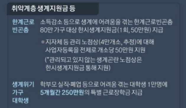 4차 긴급 지원금 취약계층 대상자(노점상, 대학생)
